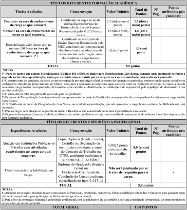 • Avaliação de títulos: de caráter classificatório.