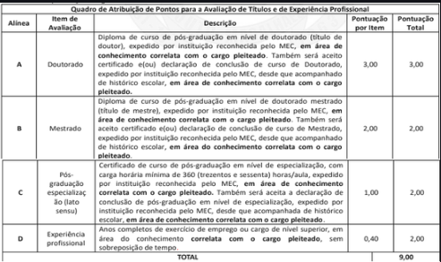 A prova de títulos será realizada considerando os títulos de formação acadêmica. A pontuação para a prova de títulos será realizada da seguinte forma: