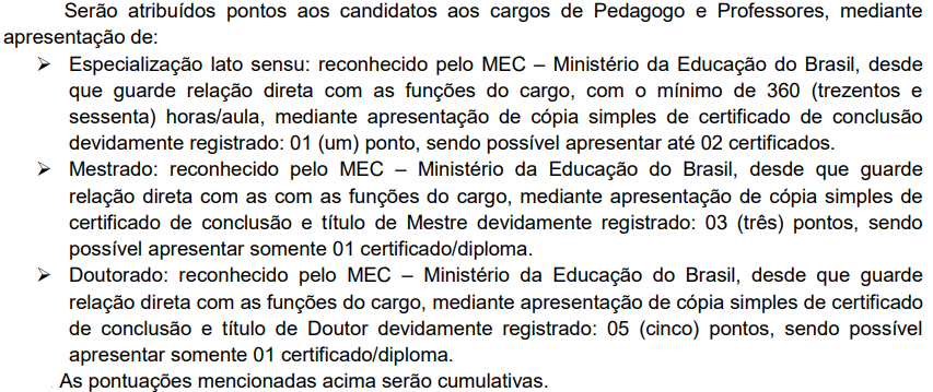 A prova de títulos será realizada considerando os títulos de formação acadêmica. A pontuação para a prova de títulos será realizada da seguinte forma: