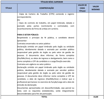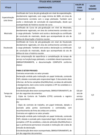 A prova de títulos será realizada considerando os títulos de formação acadêmica. A pontuação para a prova de títulos será realizada da seguinte forma: