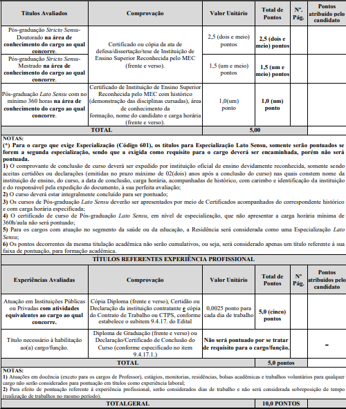 A prova de títulos será realizada considerando os títulos de formação acadêmica. A pontuação para a prova de títulos será realizada da seguinte forma: