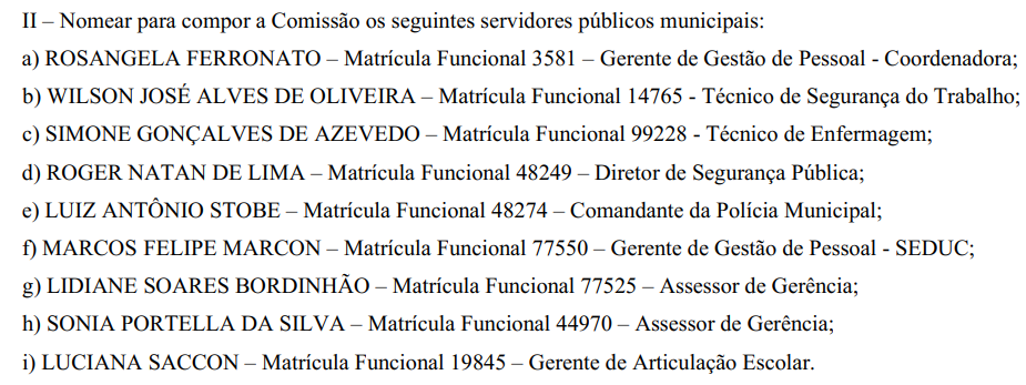 Segundo a Portaria N.º 0026244, publicada na última terça-feira (11), a comissão será formada por 9 servidores públicos municipais, confira: